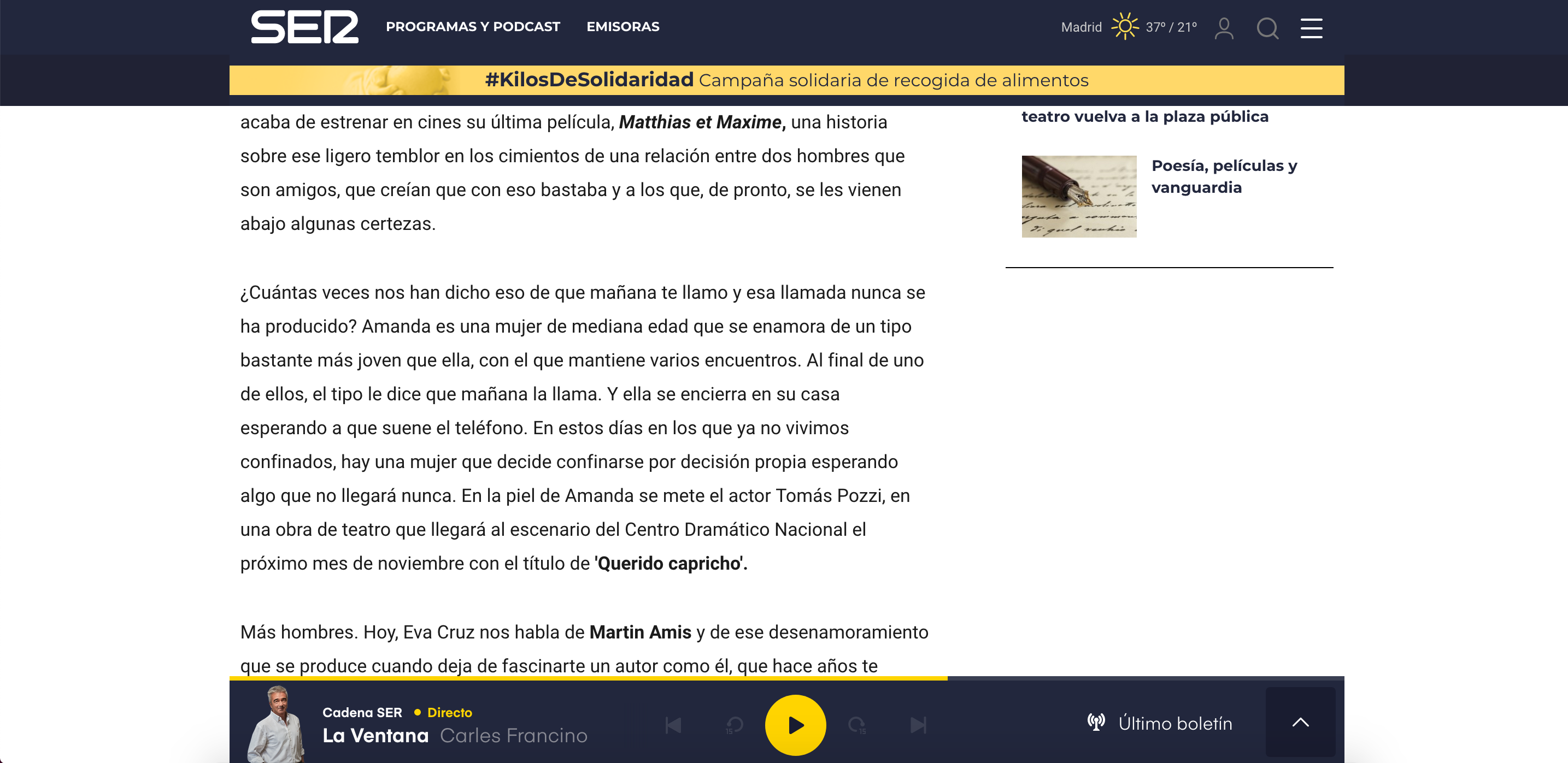 El actor Tomás Pozzi habla de nuestro próximo espectáculo en la Cadena Ser (La Hora Extra con Marta García Miranda).