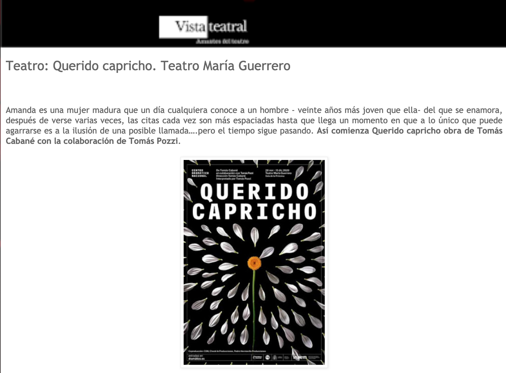 Vista Teatral saca su crítica sobre «Querido capricho»